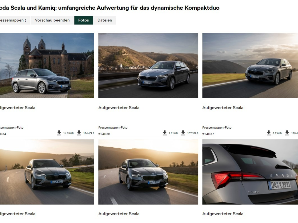 Škoda Auto hat seine erfolgreichen Kompaktmodelle umfangreich aufgewertet. Die neu gestalteten Front- und Heckschürzen sowie die schärfer gezeichneten Scheinwerfer verleihen dem Scala einen noch sportlicheren Auftritt und betonen die SUV-Präsenz des Kamiq. Zudem erhalten beide Baureihen ein neues Interieurdesign inklusive Design Selections und neuen nachhaltigen Materialien. Drei Motoren der aktuellen evo2-Generation mit Leistungen zwischen 70 kW (95 PS) (Kamiq 1,0 TSI 70 kW: Kraftstoffverbrauch (kombiniert): 6,2 – 5,0 l/100 km; CO2-Emissionen (kombiniert): 141 – 113 g/km (WLTP-Werte); Scala 1,0 TSI 70 kW: Kraftstoffverbrauch (kombiniert): 6,2 – 4,6 l/100 km; CO2-Emissionen (kombiniert): 139 – 105 g/km (WLTP-Werte)) und 110 kW (150 PS) (Kamiq 1,5 TSI ACT 110 kW: Kraftstoffverbrauch (kombiniert): 6,3 – 4,9 l/100 km; CO2-Emissionen (kombiniert): 143 – 111 g/km (WLTP-Werte); Scala 1,5 TSI ACT 110 kW: Kraftstoffverbrauch (kombiniert): 6,3 – 4,9 l/100 km; CO2-Emissionen (kombiniert): 143 – 111 g/km (WLTP-Werte); Kamiq 1,5 TSI ACT DSG 110 kW: Kraftstoffverbrauch (kombiniert): 6,2 – 5,0 l/100 km; CO2-Emissionen (kombiniert): 141 – 112 g/km (WLTP-Werte); Scala 1,5 TSI ACT DSG 110 kW: Kraftstoffverbrauch (kombiniert): 6,2 – 5,0 l/100 km; CO2-Emissionen (kombiniert): 141 – 112 g/km (WLTP-Werte)) sowie ein umfassendes Angebot an Sicherheitsfunktionen und Assistenzsystemen runden die Modellaufwertung ab.#