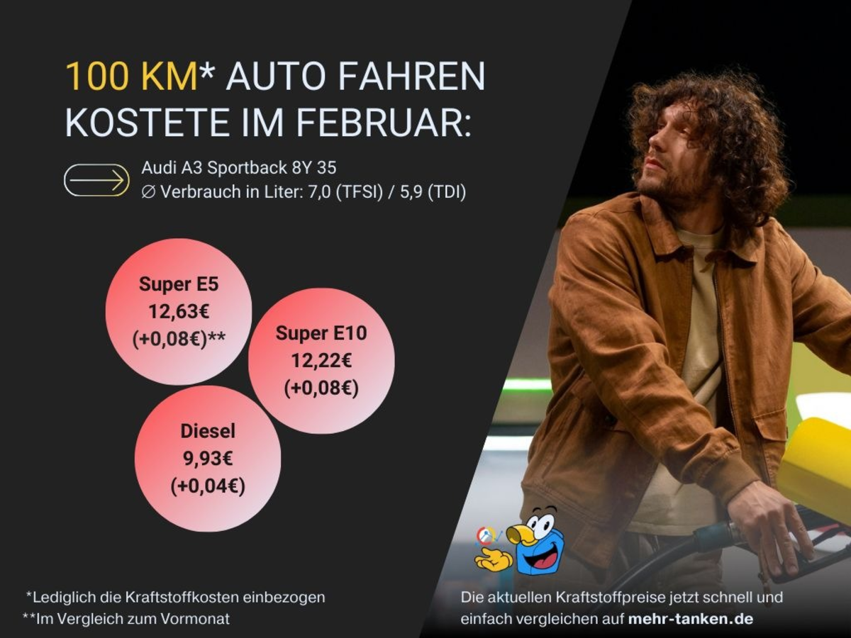 Im Februar zeigten die Preise für Super E5 und Super E10 erneut Schwankungen mit täglichen Veränderungen von 9,8 bis 11,2 Cent pro Liter. Beim Diesel lagen die Preisschwankungen im Durchschnitt zwischen 10,8 und 12,5 Cent pro Liter.