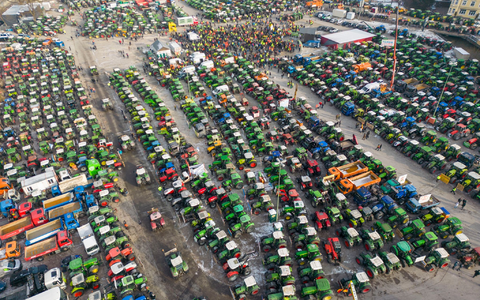 Özdemir nahm in Ellwangen an einer Bürgerkundgebung in der Stadthalle zum Ende des traditionellen Kalten Markts teil. An der Straße entlang der Stadthalle standen laut Polizei rund 600 Traktoren sowie 2500 Landwirte und Interessierte.