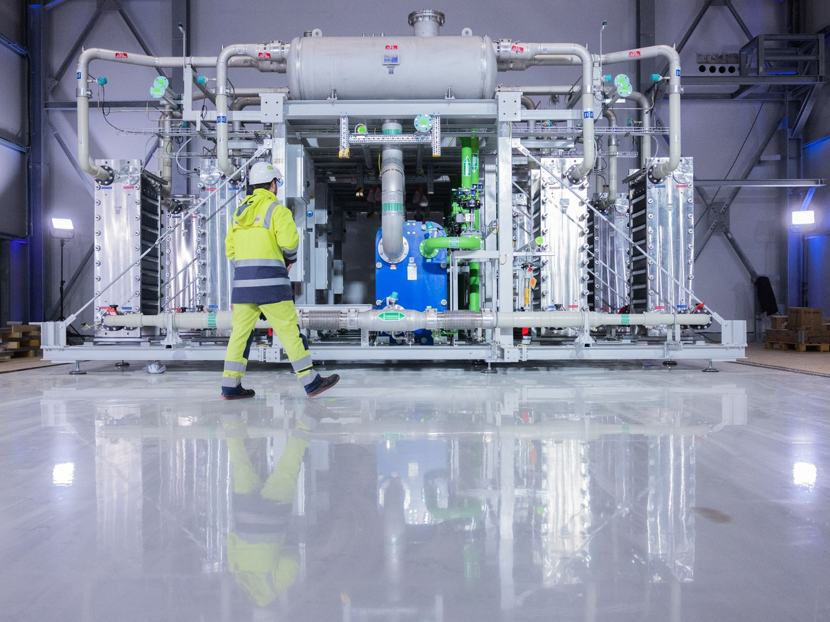 Das Problem: Benötigt werden riesige Mengen. Sie sollen in besonderen Maschinen erzeugt werden, sogenannten Elektrolyseuren. Sie spielen auch eine Rolle in den zum Wochenanfang veröffentlichten Eckpunkten der neuen Kraftwerksstrategie der Bundesregierung. Unter anderem sollen Bau und Betrieb von Elektrolyseuren erleichtert werden, heißt es darin.