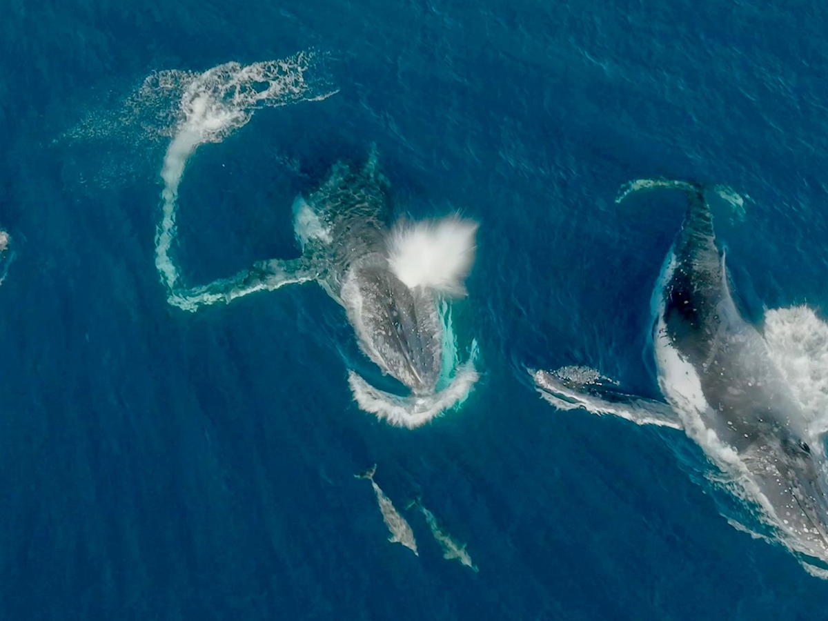 Dank Technik – etwa Kameras, die an Walen befestigt werden – konnten die Forscher beobachten, dass Delfine den Walen teilweise bis auf den Meeresboden folgen und dabei auch Augenkontakt halten.