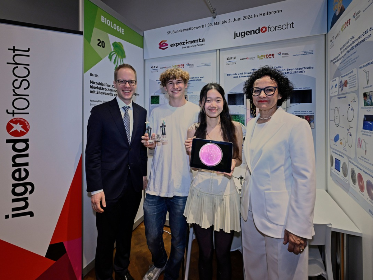 Seit Jahrzehnten arbeiten Forschende daran, mithilfe bestimmter Bakterien Brennstoffzellen zu entwickeln. Anthony Eliot Striker (18) und Tina Thao-Nhi Schatz (18) aus Berlin gelang es, mit einem Stamm der Art Shewanella oneidensis MR-1 ein solches System zu etablieren. Es funktioniert nach dem Prinzip einer galvanischen Zelle. Die beiden errangen den Bundessieg im Fachgebiet Biologie. Ben Eumann aus Nordrhein-Westfalen wurde Chemie-Bundessieger. Der 18-Jährige fand eine kostengünstige Methode, aus minderwertigem Holzteer Guajacol zu extrahieren. Diese Substanz ist ein wertvolles Zwischenprodukt bei der Synthese von Vanillin und anderen Aromastoffen.