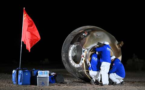 Zuvor hatte das Raumschiff mit den drei ausgebildeten Kampfpiloten der Volksbefreiungsarmee Chinas Weltraumstation «Tiangong» (Himmelspalast) verlassen und war mehr als acht Stunden zurückgeflogen. In China untersteht die bemannte Raumfahrt dem Militär. An einem Fallschirm segelte die Raumkapsel am Ende der Reise zu Boden. Knapp eine Stunde nach der Landung hatten die Bergungsteams alle Taikonauten nach Angaben der chinesischen Behörde für bemannte Raumfahrt aus der Kapsel gehievt. Demnach waren sie in gesundheitlich gutem Zustand.